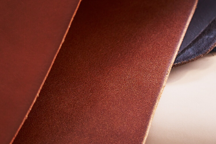 オイルタッチで温かみのあるこの革は 体に馴染みやすく、厚みがあり裏側もきれいに加工されていますので締め心地の良い一枚革のベルト用にも向いています。