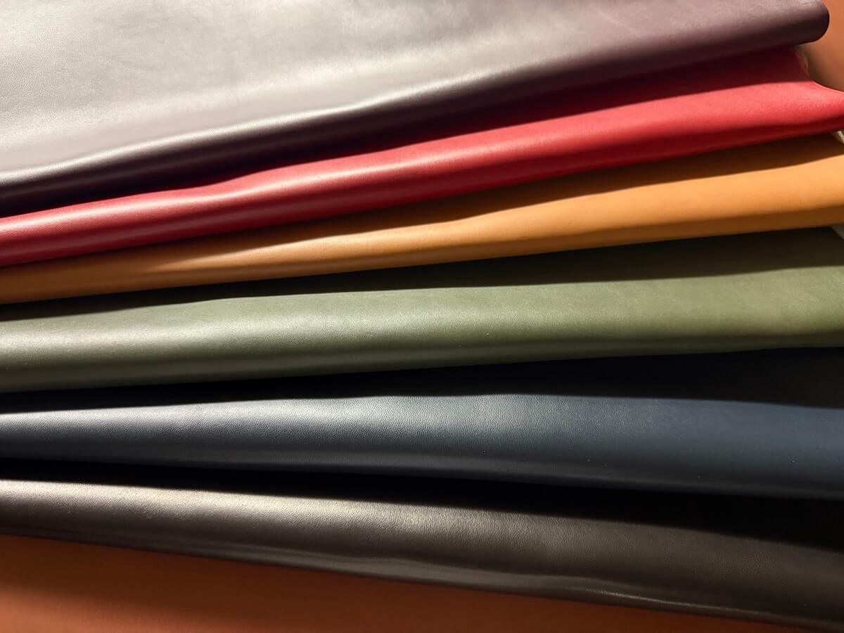 モンフリーニ社(伊)新作『オーラム』(ラム革)は全10色展開で、タンナーに在庫があるので1枚から購入が可能です。