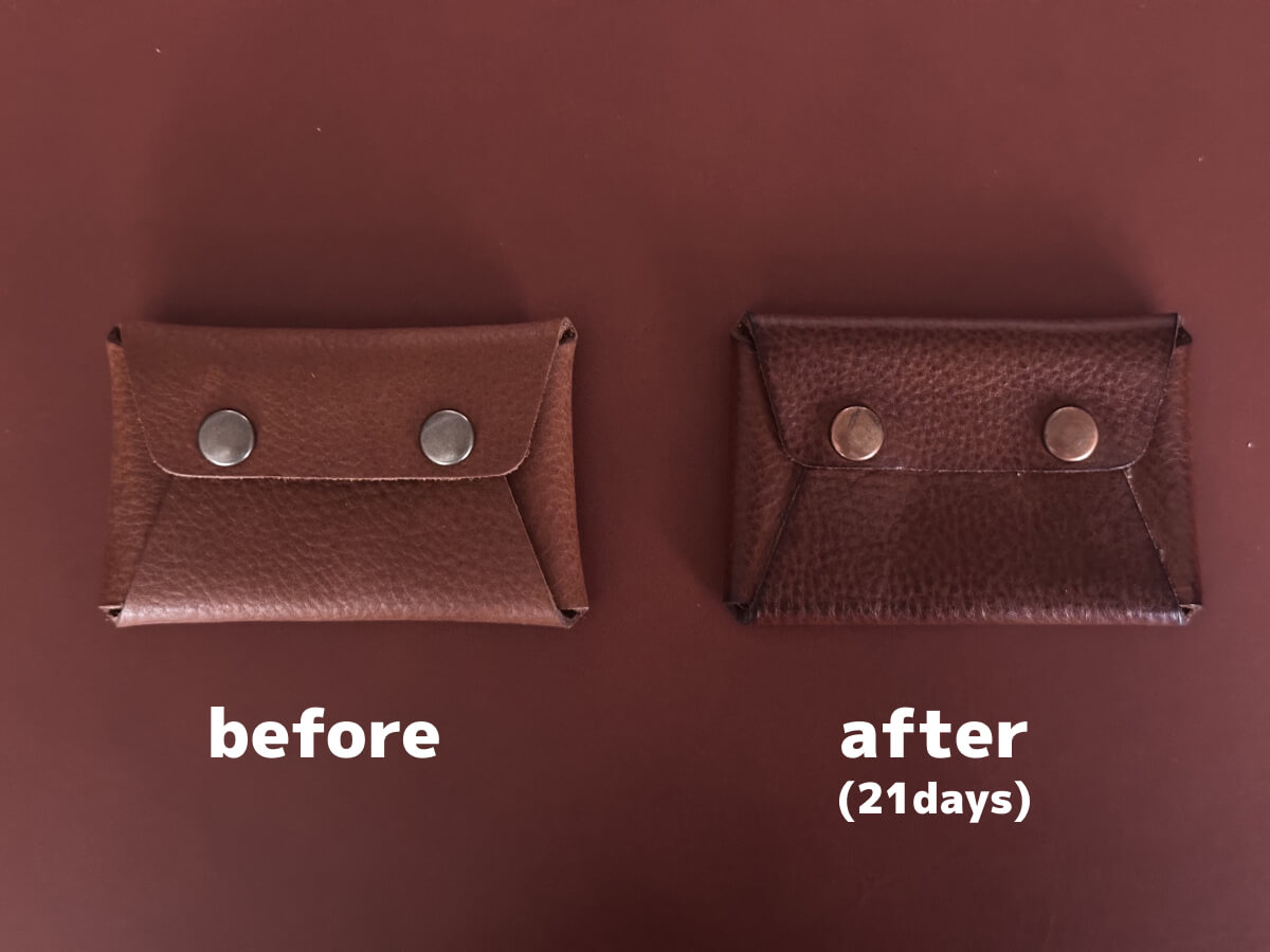 使用者コメント:何も気にせず普通に使っていた。クリームを塗ったり、日に焼いたりもして変化するのを楽しみました。