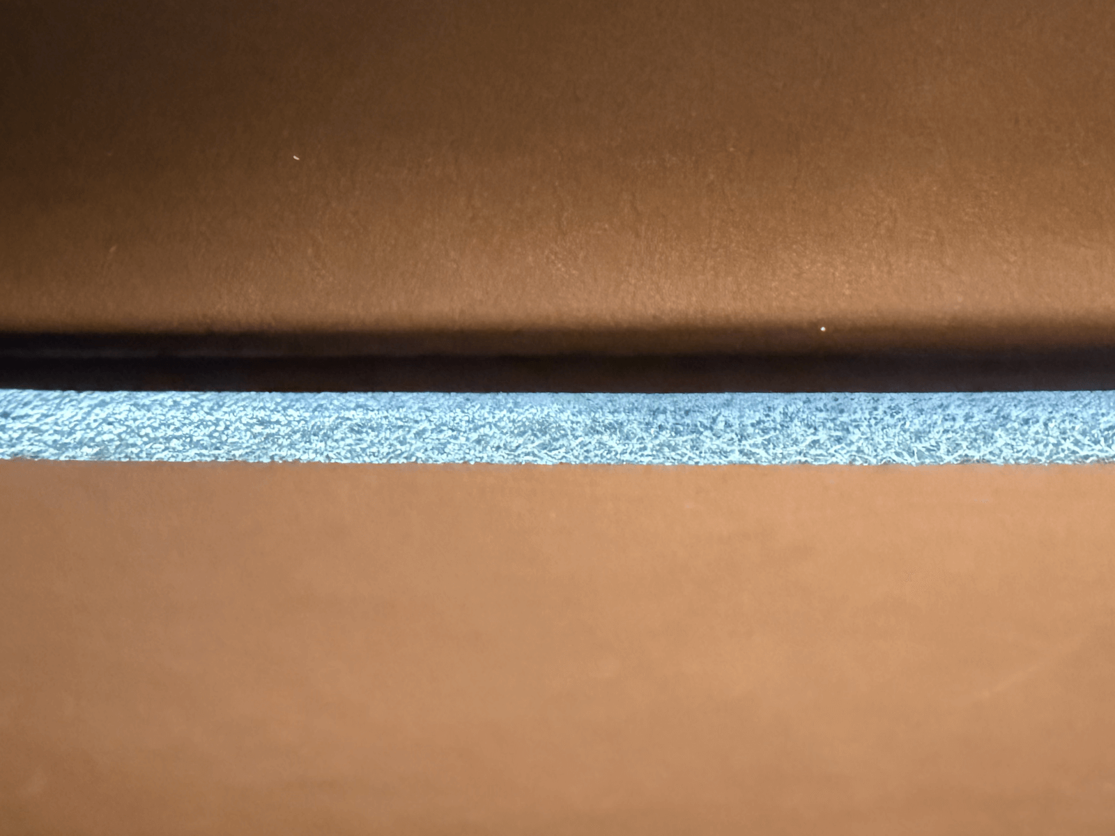 芯通しされていない革の断面図。