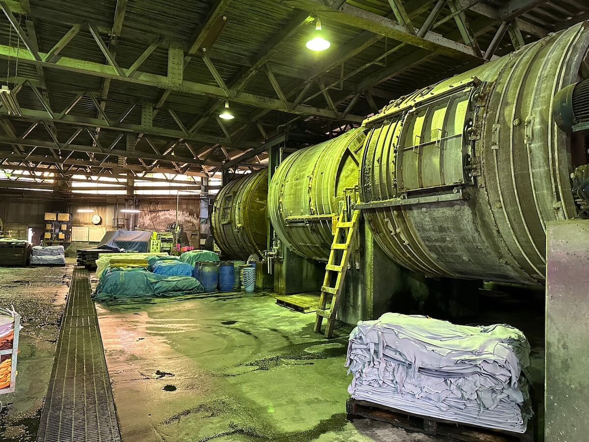 協進エルと取引のある松原地区のタンナーの画像。ドラムの大きさがよく分かります。