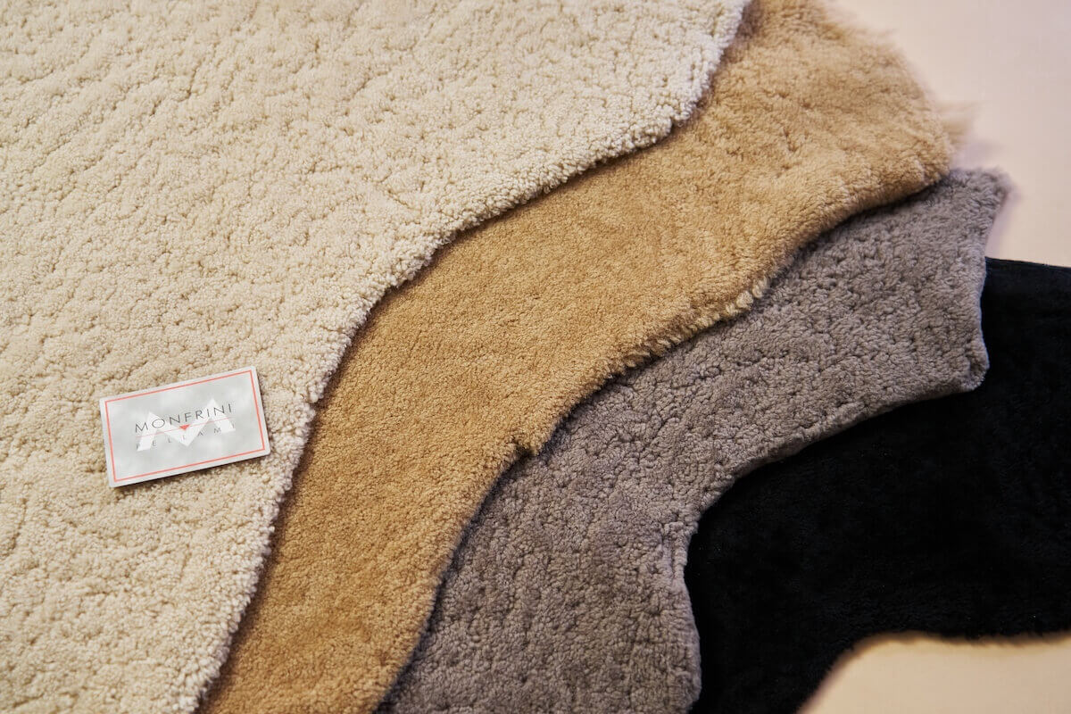 モンフリーニ社の定番商品の一品で小ロット対応も可能です。クラシックで羊本来の毛並みを生かしたカーリーヘアーでボリュームがある暖かな手触りが特徴です。