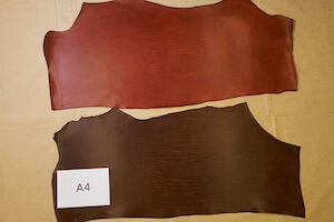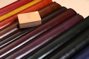 ヨーロッパ産の厳選されたショルダー部位の原皮を使用し、じっくり時間をかけて植物タンニンを用いて鞣します。ショルダー部位の特徴であるシワ模様の「トラ」がくっきりと現れ、アニリン仕上げならではの透明感のあるスムース革に仕上がっています。光沢があり自然なツートンと「トラ」が特徴です。たっぷりと加脂がされているため、使い込むと味わいが増していきます。