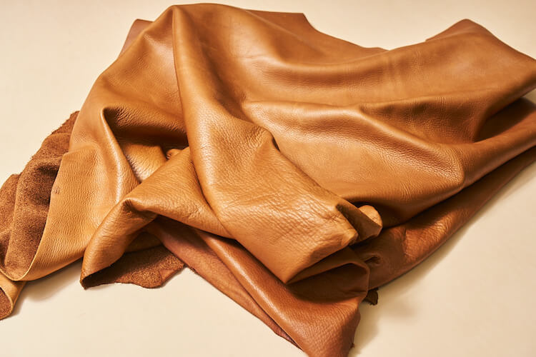 キップの原皮を使用しております。クロム鞣し時と染色時にたっぷりとオイルを含ませることにより、ディアのような風合いと、ソフトでしっとりとしたオイルタッチの革に仕上がっています。ソフトでオイルがたっぷり入ったアニリン仕上げの革で、使うほどにじわじわと馴染んでいき味わい深い革になっていきます。