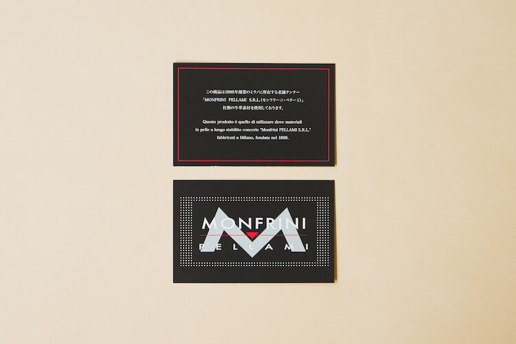 牛原皮の丸革を使用しています。クローム鞣しでミーリング加工を行いソフトに仕上がっています。非常に柔らかく小粒が特徴のイタリアらしい上品な仕上げになっています。